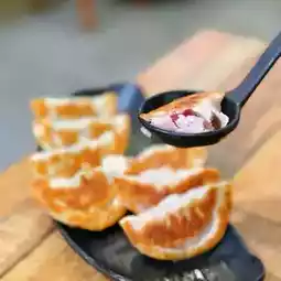 The dumplings are even more delicious after being fried, especially the onion pork dumplings, the purple onion inside is full of aroma, refreshing to eat, and the leek pork dumplings taste very good, really one after another.