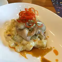 🐠 The main course of "Fried Sea Herring", the fish is fresh and tender, the fish skin is fried very crispy, another "French Slow Cooked Spring Chicken", the size of the chicken is very mini, the portion is a little less, but the side dish potato salad is quite tasty!