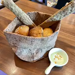 Explorer Platter: Honolulu salmon, popcorn shrimp with spicy mayonnaise, white wine-cooked mussels