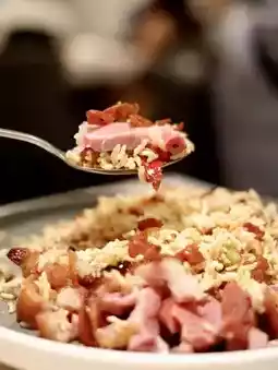 The combination of rice and pork hands into a plate of fried rice is the first time I've seen it😎 It tastes very fragrant with soybean pepper, and the rice is fried like crispy rice, along with the tender pork hands, it feels great, but it's really spicy the more you eat🥵🥵