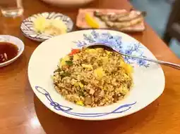 The fried rice is added with carrots, green peppers, onions and barbecued pork.