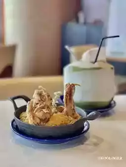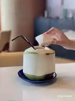 The portion of young coconut is quite large, the taste is sweet and delicious, it is a great way to relieve the heat, and it goes particularly well with spicy Thai dishes. Remember to scrape off the coconut meat and eat it together