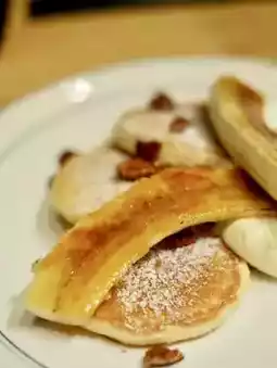 The pancake is soft and fluffy, not too dry, and not too powdery! Served with caramel bananas, it doesn't feel sweet! And the caramel is crisp because it was sprayed with a torch! But the most beautiful thing about the whole pancake is its syrup! The syrup is super fragrant and honeyed, the texture is not too thin nor too thick, the taste is not super sweet but just right to neutralize the salty taste of the pancakes themselves!