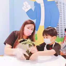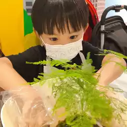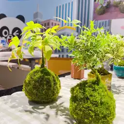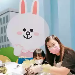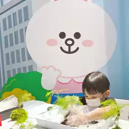Boss chose to work with me to make a "moss jade bonsai" 🪴. Children rarely have the opportunity to touch soil. My sister taught him to roll the soil into a round shape, and I helped to wrap the soil with moss and then tie it tightly with fish thread. Finally, I added BROWN & FRIENDS flags as decoration. It was a simple and parent-child workshop, which was really fun. Boss played with full dedication and seriousness.