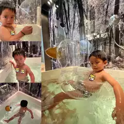 If you can't swim under a thunderstorm warning, you can use the bathtub as a backup to play in the water!