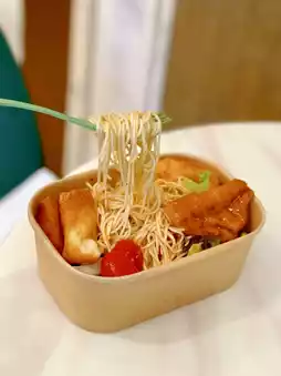 The bran noodles are bouncy, with homemade spicy sauce, quite fragrant and not very spicy, mixed with d noodles to eat, quite tasty and appetizing, plus the ingredients are very healthy, there are hundred pages of tofu, salad vegetables, cherry tomatoes, mushrooms and beans.
