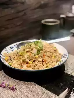 When the waiter put it down, the black truffle flavor wafted over. And the fried rice ingredients are quite a lot, in addition to carrots and corn kernels, there are also many shrimp and mushrooms 😍😍