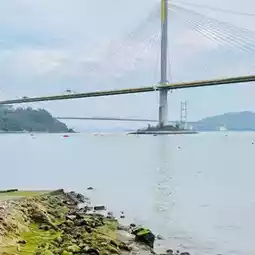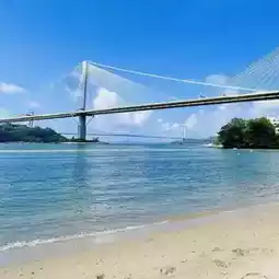 It has a beach 🏖️ where you can take pictures of the Ting Kau Bridge