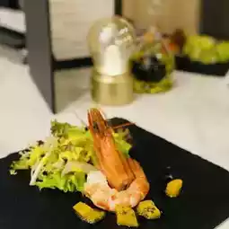 The prawns and mango flavors go well together, the salad vegetables are fresh with mango sauce, very refreshing😋