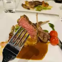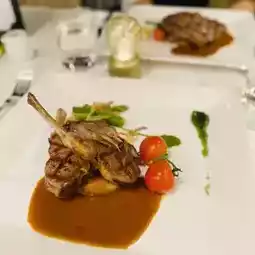 🍖 Charcoal grilled lamb saddle with bacon onion fries with mint yogurt sauce