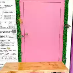 The pink random door at the door is very eye-catching, already seen in the distance🤩 The random door also has a chair, both for taking pictures and for guests to sit and rest