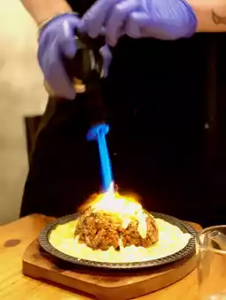 It's the cheese section again 😂😂 The combination of kimchi and cheese is unbeatable! At first, the iron plate will be poured full of egg batter and cheese, and then cooked with a torch! Because of the kimchi, the cheese flavor is relatively less out, but the whole rice is spicy and appetizing!