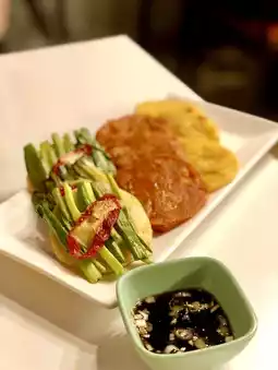 It really can satisfy all three wishes at once! There are onion pancakes, kimchi pancakes, and sweet potato pancakes! Sweet potato pancakes with salty sauce is really sweet and salty, the taste is recommended not to dip the sauce better! The kimchi pancakes have a rich kimchi flavor, but they taste sour! The onion pancakes are full of onion flavor because the whole onion is straight up! The crust here is a bit like a pancake, more soft! I personally prefer to eat crispy ones more!