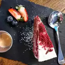 Red Devil Velvet Cake with Drag Fat Sauce (separately)