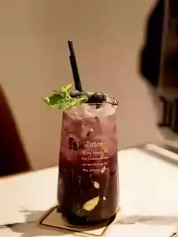 This soda is sour but has the sweetness of blueberries because it has lime, and it also has three fresh blueberries😍