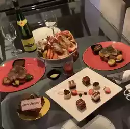 September, Saturday to Tokio Hotel staycation to celebrate birthday, $ 8xx per person 👉🏻 Breakfast, dinner,  $ 0 ~ upgrade  800 feet suite, the room is great 90 degrees  glass window, there are two washrooms 🤣, we two people use, one person a toilet 😂 Dinner can choose Chinese or Western, birthday must be Western food, check in 😆 , breakfast is a buffet breakfast, dinner is eaten in the room, the taste is very good hot and spicy will not be paralyzed cold first brought up, the seafood plate is delicious.