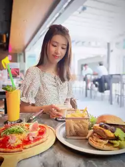 The portion is quite filling, the burger 🍔 is huge ~ It is filled with minced chicken, cheese, avocado 🥑, and large brown mushrooms 😋. It is also served with hot fries and a little ketchup, so perfect 💖