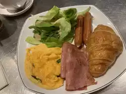 Ma On Shan value for money breakfast, weekday morning, many diners, restaurant environment leisurely, spacious seating, you can scan code self-service order, the cheapest breakfast is $ 28 including drinks, fish cake sticky rice noodles, spicy quite wild, soup tasty good, this price has this quality value for money. In addition other breakfasts are delicious, the croissant is warm and loose, scrambled eggs are smooth, the food looks very good, definitely not randomly made for you, lemongrass pork chop size large pieces of delicious, affordable, and the store service staff proactive and polite. Worth place to come back for breakfast, next time I will definitely try it for lunch or dinner.