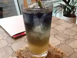 A tree pear blossom is butterfly pea flower tea with D pear sauce. So the color is blue-purple ~ ~ fresh entrance!