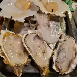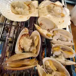 There are ready-to-eat oysters, scallops, whole squid, oriental snails, bacon, mussels, sand mussels, big-eyed chicken 🐟 yellow guns, etc... all you can eat and grill🤤