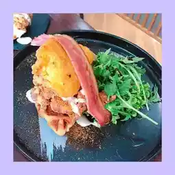 Fried Chicken Croissant Waffle🧇 (Crispy Bacon French Fries Salad Honey Mustard Sauce)