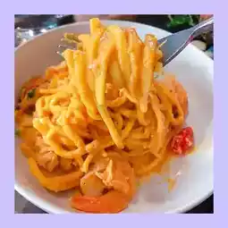 I wanted to eat a burger 🍔 but it was sold out 🥲 The pasta was very juicy 😋 Although I don't eat much pasta 🙊 but I ate half a plate 😆 It proved to be quite good 🥳 The pink sauce should be mint 🤔