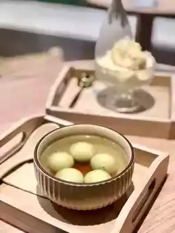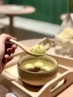 This sweet shop I think their dishes are quite special, even the dumplings are different from tradition, I'm the first time I saw matcha dumplings 🤩🤩 The soup is osmanthus soup, drink sweet and clear, a bite, the matcha filling comes out, like eating a hot version of matcha ice cream, very fragrant milk!