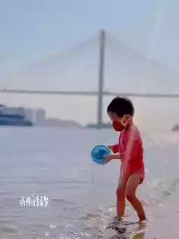 My twin mother can swim, but she is not good at swimming. The water will soak over my head, so I didn't go into the water.