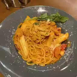 Tomato cream fried year cake, 😋 usually already super like year cake, smoky and tough taste must be my favorite, spaghetti mixed with smooth cream, fresh tomato sauce, eat sweet and sour, more refreshing and attractive ❤