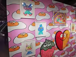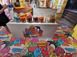 New York-based British artist Jon Burgerman has arrived at K11 MUSEA, bringing his signature whimsical cartoons to life in "Candyland." A special Pick 'N' Mix candy-grabbing area features heart-shaped peach gummies, sour cream bottles, shoestring candies, and Trolli hamburger candies—all beloved nostalgic candies from Hong Kong. Relive your childhood memories by grabbing candy and experience the artist's joy in choosing from a range of candy-colored paints and materials. Besides the familiar flavors, there's also a collection of limited-edition merchandise, including prints, rugs, and brooches—worth collecting!