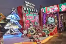 (Christmas Bus Terminal) As a Christmas lighting theme, there are multiple "check-in spots"