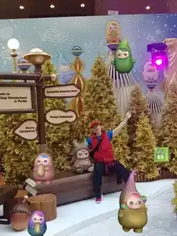 More than 300 elves of different sizes created by Piqi will be on display at the same event. Piqi's personal exhibition displays many precious manuscripts and more than 500 works, and 6 limited-time Piqi Christmas elf characters specially designed by Piqi will be launched during the event. In order to increase interaction with customers, the event also set up Piqi's first AR filter, allowing customers to take photos with Piqi elves. 📸There are two shooting spots. You need to scan the filter with your phone first, and then scan the designated pattern to activate the Pucky AR filter on Instagram, allowing you to constantly search for multiple beans hidden behind the AR experience lens in Sparkling Wonderland by Pucky, including the "Flute Girl" next to Pucky's personal exhibition in the Fantasy Time Tunnel. Whenever music comes out of the flute, the dancing beans next to it will dance to the music. However, the playful flute girl and dancing beans do not easily show their talents. You will have to look through the AR experience lens of your phone to see the dancing beans dancing to the music. Another Pidgeon Christmas elf character, "Monster Bean", is equally playful. He sits on a wooden chair next to the entrance and chats with several invisible beans hidden next to the golden Christmas tree. As long as you sit next to the monster bean and use the AR lens of your mobile phone, you can see the invisible beans. 📱