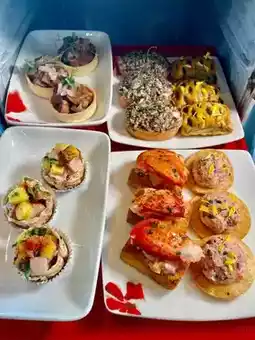 Crabmeat salad Mexican pizza, teriyaki sauce salted beef tongue onion pastry tart