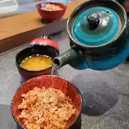 Very fragrant fried rice with cherry shrimp, shiitake fish slices with scallions fried together, and attached to the broth, can eat half of the option to add soup to become tea-soaked rice.