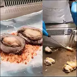 The master bakes the kelp crab in kombu, and skillfully arranges the crab legs without shells after frying, making the crab meat firm and meaty.
