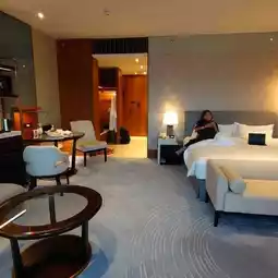 One of my favorite Shangri-La-owned hotels, unfortunately became a quarantine hotel. The welcome ceremony was rich, and the first round of free at the minibar was very generous. The rooms are over five hundred square feet, the size of some open-plan suites, spacious bathrooms, large standing bath space has nearly two meters by two meters. Breakfast is eaten in the Lounge, with a la carte plus buffet snacks, laksa, Japanese, Chinese breakfast are all high quality. The three sofas in the room did not feel the sense of space diminished. Sea view overlooking North Point and Wan Chai. There is takeaway downstairs and you can also eat red sugar. It's good value for money. The past can only be recalled. 😭