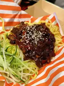 Korean fried noodles is a Korean Chinese dish, 🍜 The black sauce is made with black beans, stir-fried with many vegetables and a little minced pork, poured on the noodles, 😙 and fragrant and smooth. Black bean sauce is most like sweet noodle sauce from Shandong, very appetizing. 🥢