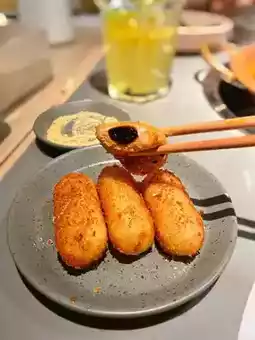 ▫️First time to try popped glutinous rice dumplings😯 The outer layer is crispy, dipped in yellow bean powder, chewy and tough🥳 The red syrup in the middle is quite fragrant and not too sweet, a surprise!!️🤩
