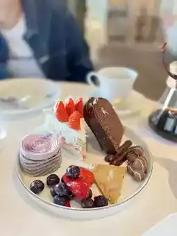 First will be served 4 color finger sandwiches, each piece is very tasty🤤 I like the black one the most🤤 There are several slices of black truffles on top, the sandwich is sweet and sour and delicious😋 Then we will serve a dessert rack, the taste is average, I think the savory is better. Also came with two muffins, hot butter flavor, very fluffy🤤🤤