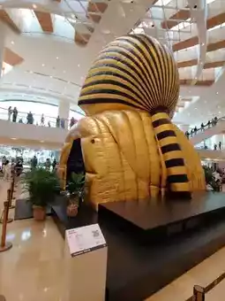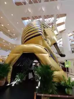 Gravity creator Awol Erizku said the ten-meter-high sculpture Gravity, based on King Tutankhamun, is known as a symbol of omniscience and wisdom, and its influence has been unquestionable since ancient times. The playful works explore the ideas of eternity and existence through ancient people and things, blowing the space inside a tunnel but putting down his own treasured books, music, movie CDs, incense, etc., which will deeply attract visitors to stop and take a closer look.