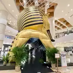 Recently, when I passed by Pacific Place in Admiralty, I saw a huge golden Pharaoh inflatable artwork. It was very eye-catching and attracted many people to take pictures with it! We can even go inside and see a small exhibition!