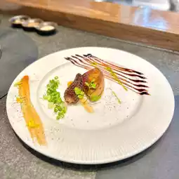 Pan-fried goose liver, super thick cut, and pan-fried until crispy on the outside and tender on the inside, served with Italian balsamic vinegar, Perfect! 😊