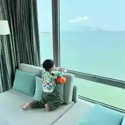 🧸 We went to Check in very early, the hotel staff was very friendly, very enthusiastic to play with the two brothers, know my brother's birthday, and gave him a teddy bear doll, my brother has a share, very happy! The hotel lobby is very open, the design is full of ocean atmosphere, giving people a holiday atmosphere.