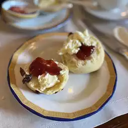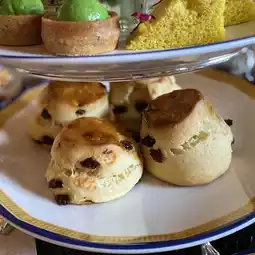 Afternoon tea is served on a traditional three-tiered shelf