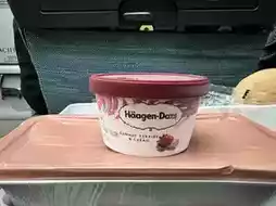 I flew in economy class, but all of the in-flight meals, except for the flight departing at 9:30, came with a mini cup of Häagen-Dazs ice cream❤️ I don't usually eat much ice cream, but when it comes with an in-flight meal, I get excited😆 (By the way, on the 9:30 flight, it was yogurt instead of ice cream.) All of the main dishes I chose were Western-style, not Chinese. There was also an option for porridge for breakfast, so they might have a Chinese menu.