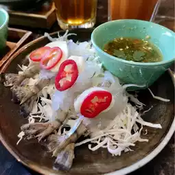 Fresh and sweet and bouncy, with Thai spicy sauce appetizing and delicious😋