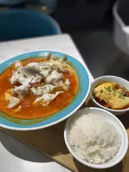 It has a variety of lunch sets, $168 includes main course, snacks, rice and drinks, many choices, plenty of portions but also can try different dishes, one person can come to eat. And this time we chose the tomato fish, it has a strong tomato flavor, not very spicy, sour and very appetizing, the bottom has a large amount of absorbed some tomato soup fans, very tasty.