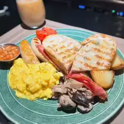 This ADB is really full of ingredients, you don't have to worry about not being full 🤣 There are pork sausages, bacon, scrambled eggs, baked potatoes, fried mushrooms, tomatoes, ketchup beans, Black pudding and two pieces of toasted sourdough bread 😍