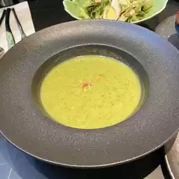 Burdock and Miso Veloute is a rich soup with burdock and miso as the main ingredients, and it has a delicious taste.