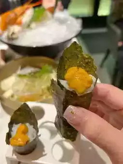 The sushi rolls are exquisite, with must-try seaweed hand rolls, flower love, black truffle crab meat cheese soft shell crab roll, colorful mango curry shrimp roll, cheese eel roll, etc. The sushi here is small, you can try several different styles.